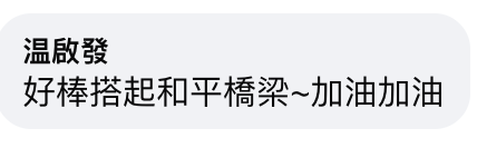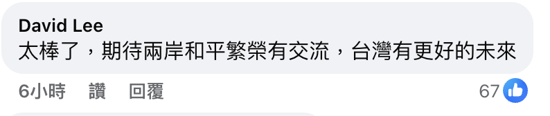岛内民众在相关帖文下留言表示:“要和平繁荣,是人民之福,不要战争,赞!”“好棒,搭起和平桥梁~加油加油!”“年轻人的未来,有希望了!”“太棒了,期待两岸和平繁荣有交流,台湾有更好的未来。”