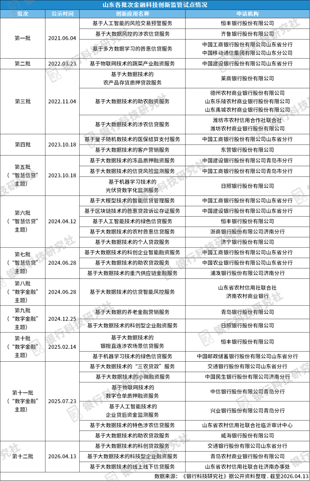 《银行科技研究社》(作者 薛小易):4月13日,山东省金融科技创新监管工具新一批创新应用对外公示,这是该地区目前为止的第十二批金融科技创新应用。
